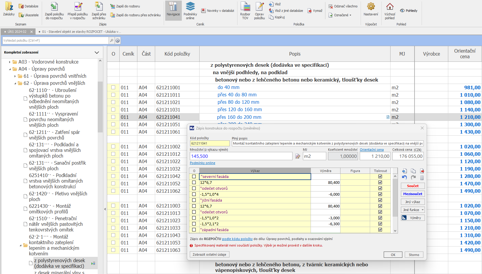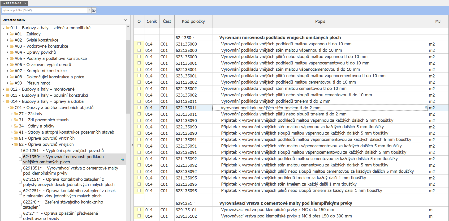 Nepostradatelná databáze pro všechny, kteří řeší cenu stavebních zakázek. Obsahuje nejen ceny položek stavebních prací, technologií a materiálů, ale také ucelenou metodiku a pravidla pro jejich používání. Díky svému rozsahu s ní dokážete rozpočtovat všechny druhy staveb. Cílem Cenové soustavy ÚRS je pomáhat investorům, projektantům i dodavatelům ve všech fázích výstavby.