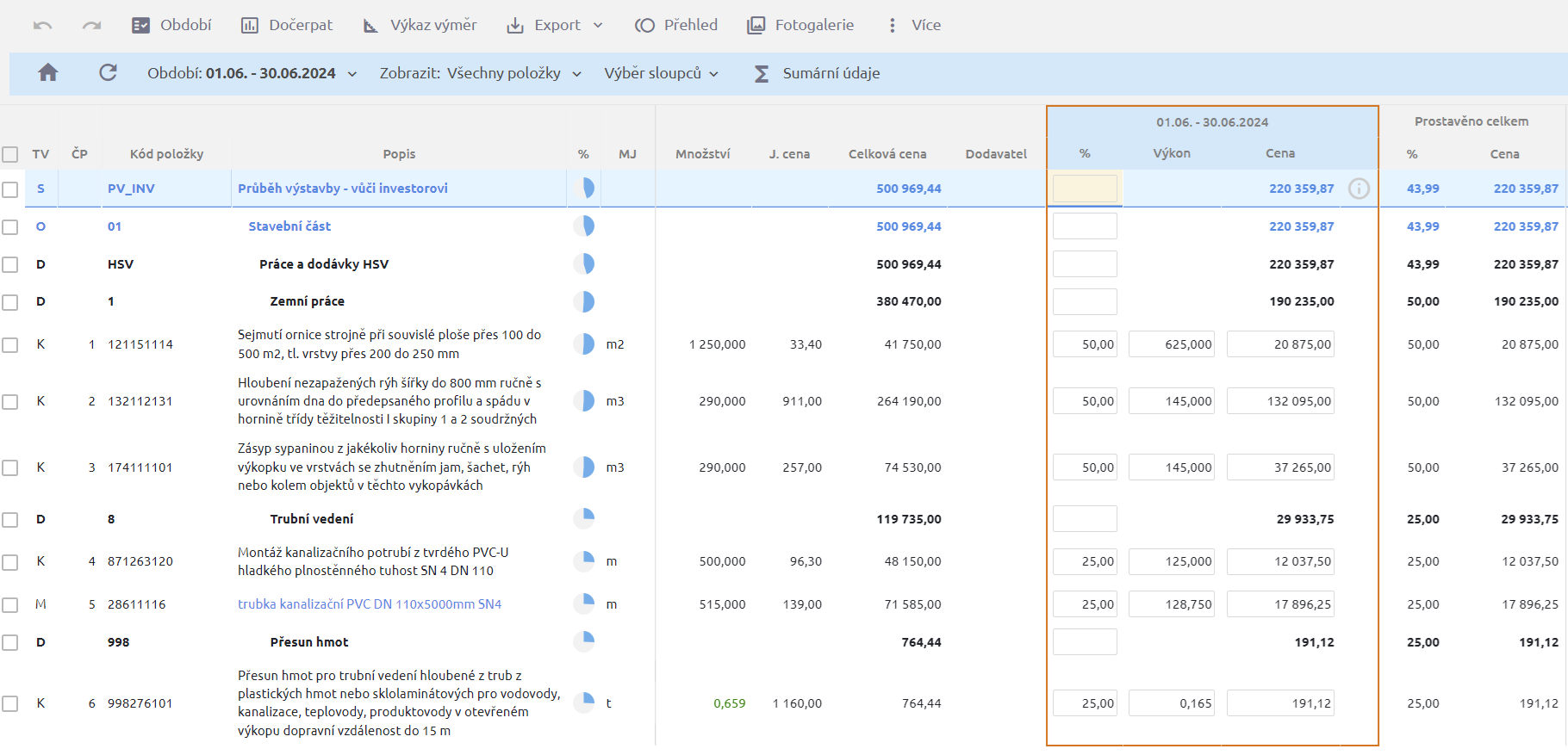 • vytvořte rozpočty/soupisy prací s výkazem výměr a jejich verze