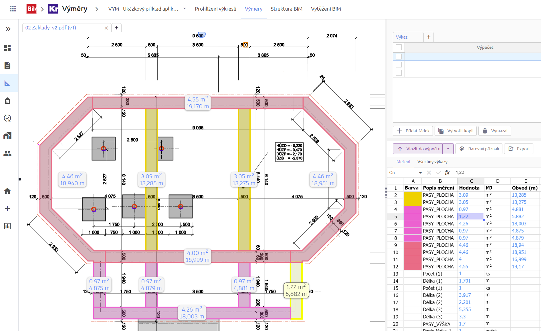 Vytvářejte v aplikaci Výměry přehledné výkazy výměr, ve kterých se už nikdy neztratíte. Díky odměřování množství položek z výkresů máte vizuálně propojený výpočet přímo s projektovou dokumentací. Zpětné dohledání potřebného čísla nebo kóty je díky tomu velice snadné. Díky chytrým funkcím určeným přímo pro rozpočtáře ušetříte spoustu času a energie. Aplikace za vás automaticky sčítá hodnoty se stejným popisem nebo doplňuje hodnotu obvodu k naměřené ploše.