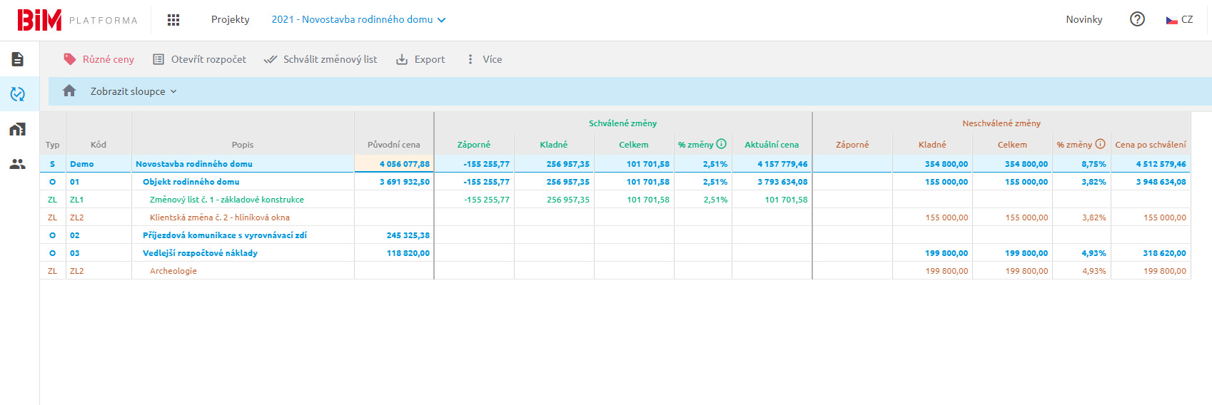 SLEDUJTE VLIV ZMĚN NA PŮVODNÍ ROZPOČET S NOVOU APLIKACÍ ZMĚNY BĚHEM VÝSTAVBY