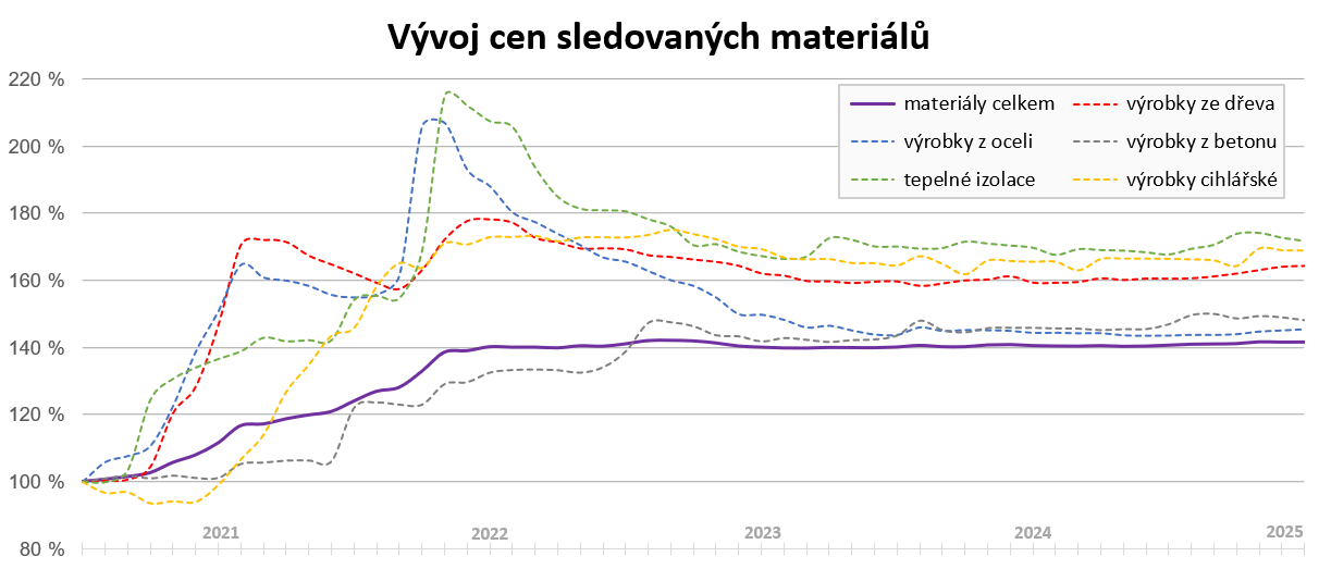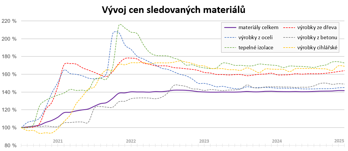Náklady na stavební materiály činí v průměru 40–60 % z celkové ceny stavby a představují tak její majoritní složku. Rokem 2021 skončilo dlouhé období s víceméně stabilními cenami materiálů, kdy jsme zaznamenávali meziroční změny v řádu jednotek procent. Od roku 2021 dochází k mimořádným změnám, kdy určité druhy materiálů zdražují i o desítky procent během jediného měsíce.