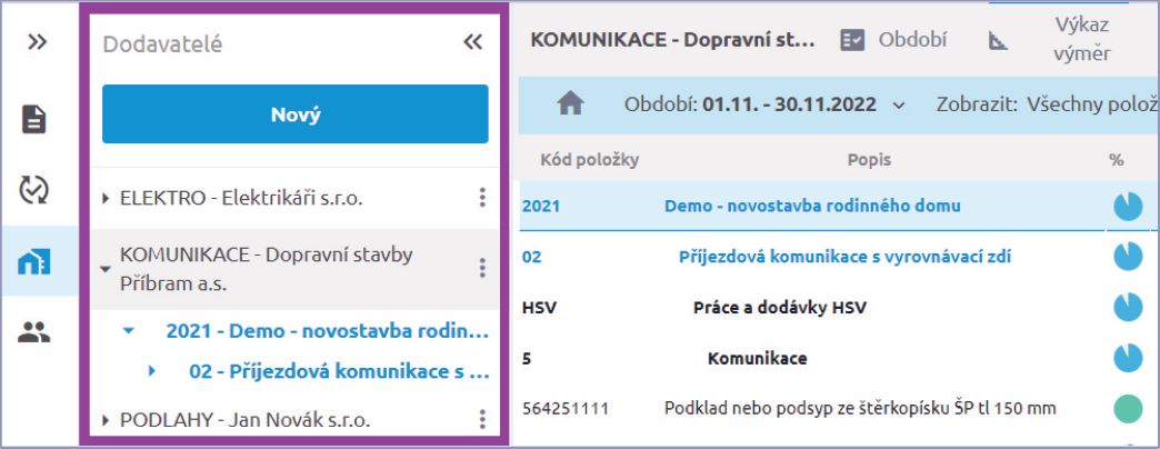 Aplikace Průběh výstavby nyní umožňuje rozdělit zakázku tak, aby každý z účastníků viděl pouze položky, které mu generální dodavatel nasdílel. Subdodavatel pak zadává výkony a komunikuje s dodavatelem ve vlastním prostředí nezávisle na ostatních. Vyplněné a odsouhlasené výkony subdodavatelů lze pak jednoduše převést do celkového soupisu provedených prací pro investora.