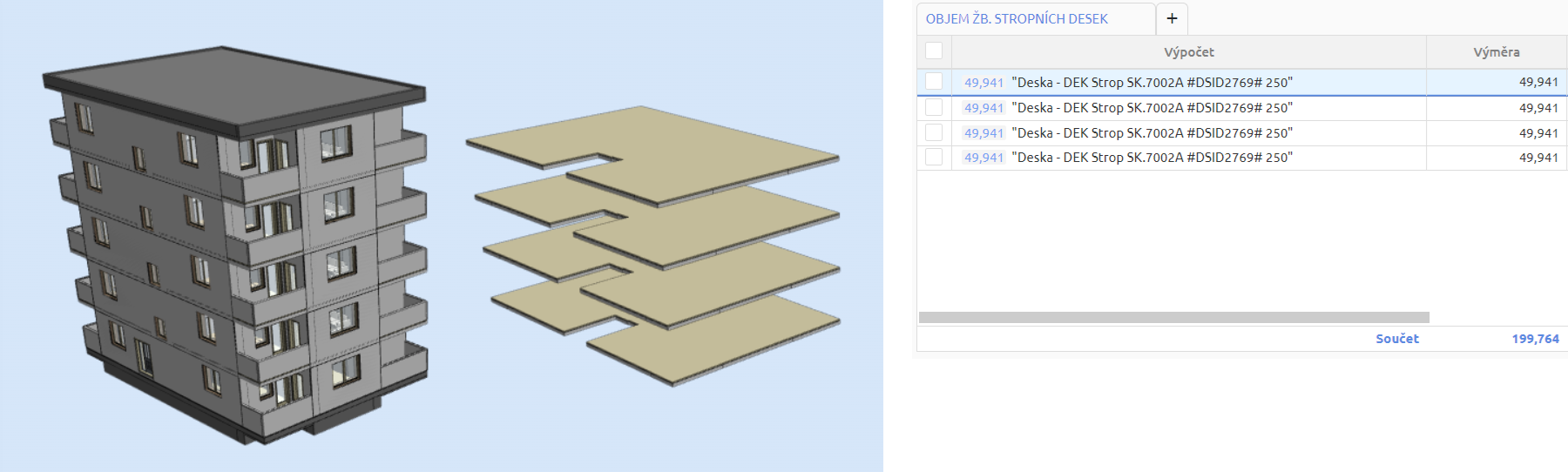 Aktivně připravujeme rozšíření aplikace Výměry o možnost vytěžení výměr z BIM modelu (IFC). Prvky bude možné seřadit/seskupit na základě stejných vlastností a automaticky sečíst jejich množství (kusy, délky, plochy, objemy). Vytěžené hodnoty pak budete moci používat ve výkazech výměr. Díky tomu získáte rozpočet, který je vizuálně i výměrami propojený s BIM modelem.