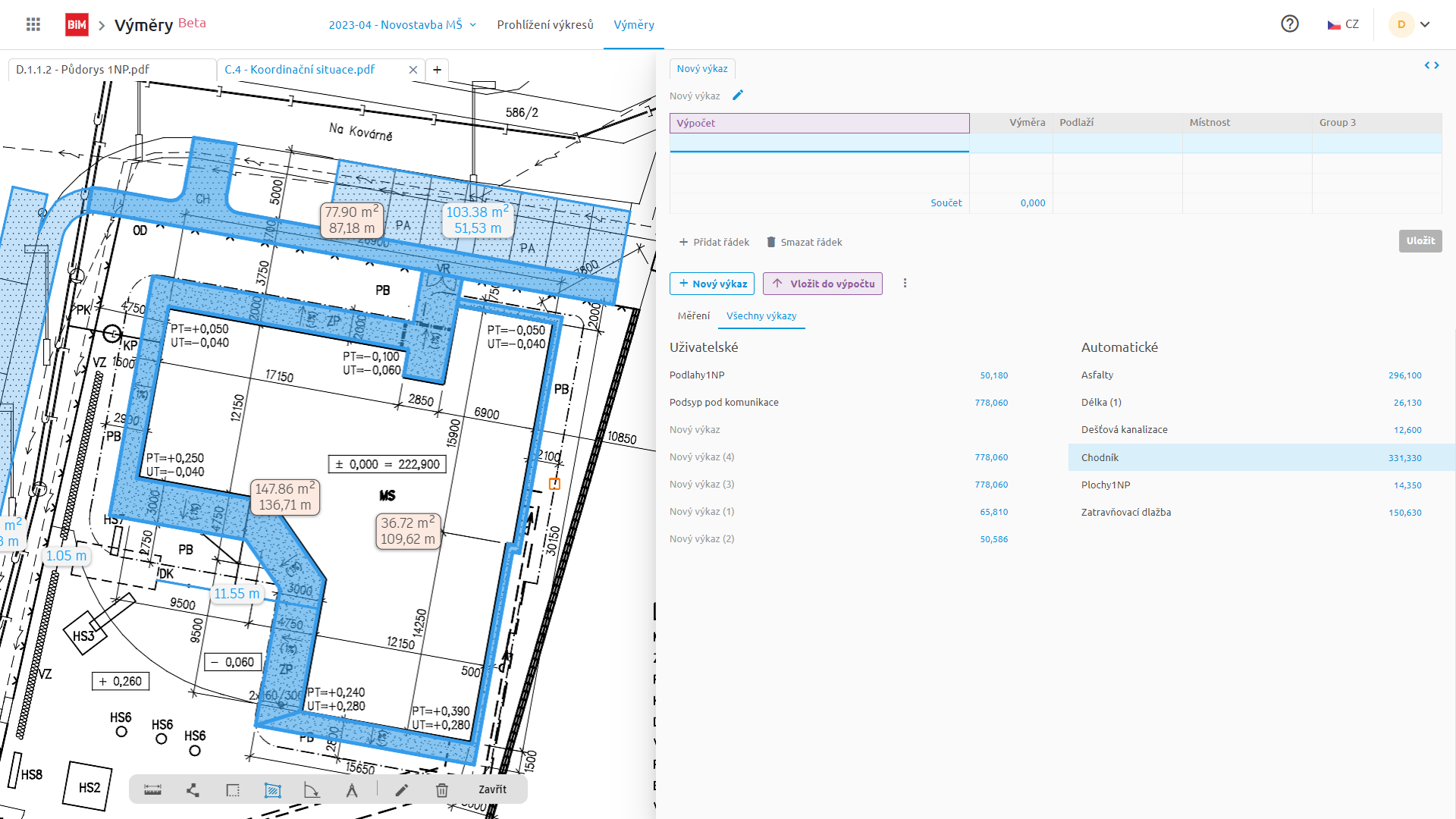 Seznamte se s aplikací Výměry. Díky odměřování množství položek z výkresů máte vizuálně propojený výkaz výměr přímo s 2D nebo 3D projektovou dokumentací. Zpětné dohledání potřebného čísla, kóty nebo prvku modelu je díky tomu tak jednoduché, že se ve vašich výpočtech už nikdy neztratíte.
