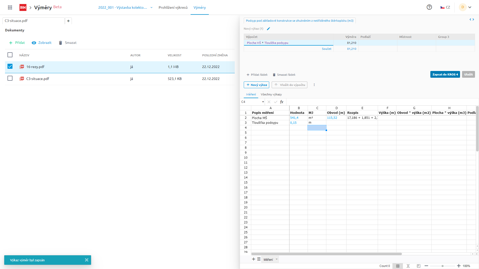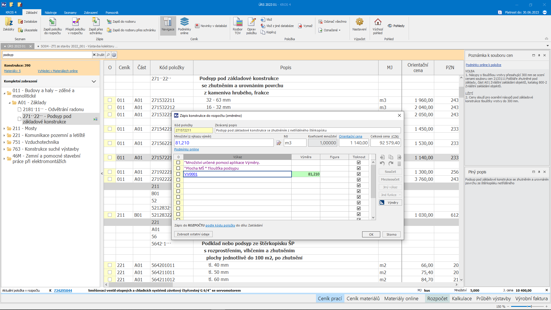 Aplikace Výměry poskytuje nový pohled na výkazy výměr položek, které snadno spojíte s položkami v programu KROS 4.